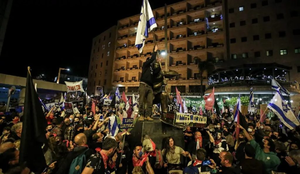 নির্বাচনের আগে আবারও সরকার বিরোধী বিক্ষোভে উত্তাল ইসরায়েল। শনিবার জেরুজালেমে প্রধানমন্ত্রী বেনজামিন নেতানিয়াহুর নেতৃত্বের অপসারণের দাবিতে এ বিক্ষোভ করেন ইসরায়েলিরা।