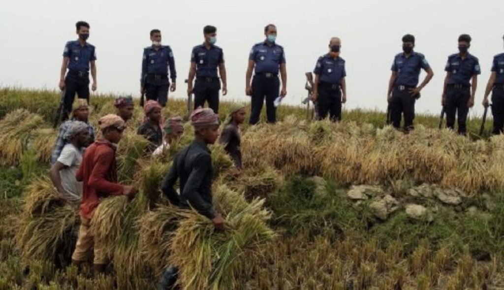 ভৈরবে পুলিশ প্রহরায় ধান কাটলো সেই দুই গ্রামের কৃষকরা। আজ বৃহস্পতিবার সকালে ১২/১৫ হেক্টর জমির বোরো ধান পুলিশের উপস্থিতে কৃষকরা কাটার পর এসব ধান তাদের ঘরে তুলেছে।