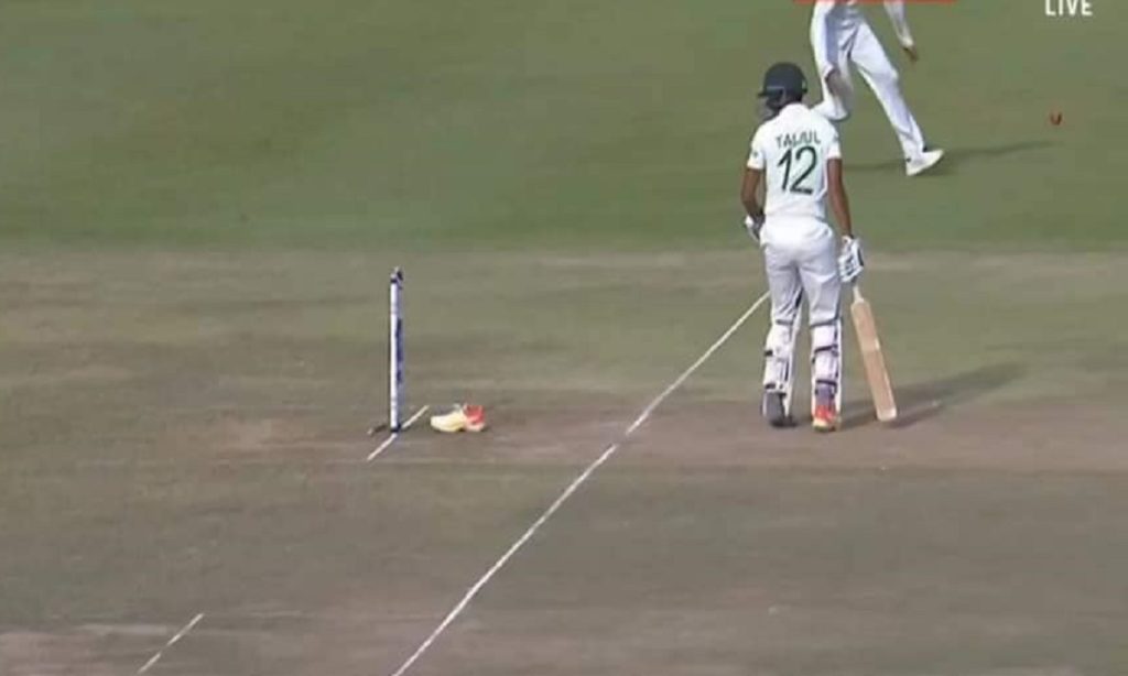 লাকমানের বলে কাভার পয়েন্টে খেলতে গিয়ে পেছনের পায়ের জুতো খুলে স্ট্যাম্পে আঘাত করায় তাইজুলের বেল পড়ে যায়। প্রতিপক্ষের খেলোয়াড়রা আম্পায়ারের কাছে আবেদন করেন হিট উইকেটের। পরে ক্রিকেটের নিয়ম অনুযায়ী তাকে আউট ঘোষণা করে ফিল্ড আম্পায়াররা। সাথেসাথেই সমাপ্তি ঘটে বাংলাদেশের ইনিংস। ফলোঅনে পড়লেও, টাইগারদের মাঠে না নামিয়ে ব্যাট হাতে নেমে পড়ে শ্রীলঙ্কা।