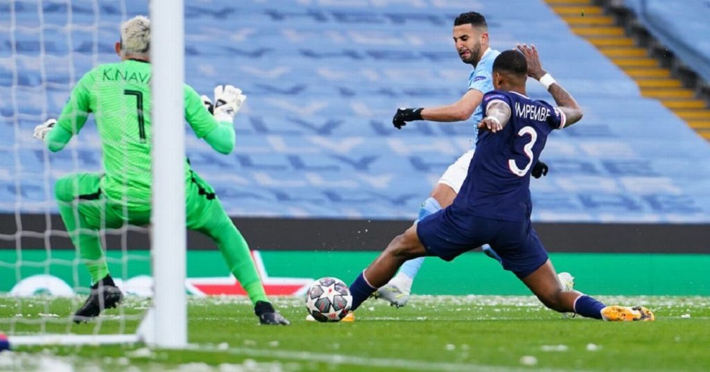 পাঁচ মিনিট পরেই গোল খেয়ে বসে পিএসজি। দারুণ এক প্রতি-আক্রমণে কেভিন ডি ব্রুইনার তৈরি আক্রমণ থেকে কোনাকুনি শটে কেইলর নাভাসকে পরাস্ত করেন রিয়াদ মাহরেজ।