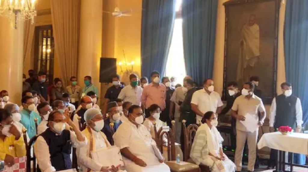 বিধানসভা নির্বাচনে বিপুল জয়ের পর গত ৫ মে তৃতীয়বারের মতো মুখ্যমন্ত্রী পদে শপথ নিয়েছেন মমতা বন্দ্যোপাধ্যায়। আজ ১০ মে শপথ নিলো বন্দ্যোপাধ্যায়ের মন্ত্রীসভার ৪৩ জন। কোভিড পরিস্থিতিতে অনুষ্ঠানের পরিসর সীমিত রাখার জন্যই অল্প সময়ে শেষ করা হয়েছে শপথ গ্রহণের কার্যক্রম।