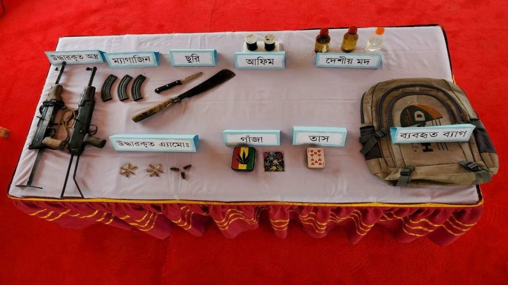 পরে ঐ স্থানে তল্লাশি করে অস্ত্র-গুলি সরঞ্জাম উদ্ধার করা হয়। উদ্ধারকৃত অস্ত্র-সরঞ্জামগুলো রুমা সেনানিবাসে নিয়ে আসা হয়েছে।