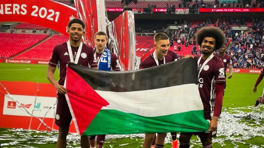 এফএ কাপের ফাইনালে ফিলিস্তিনের পতাকা তুলে ধরে ইসরায়েলের বর্বরতার প্রতিবাদ জানান বাংলাদেশি বংশোদ্ভূত ব্রিটিশ ফুটবলার হামজা চৌধুরী।