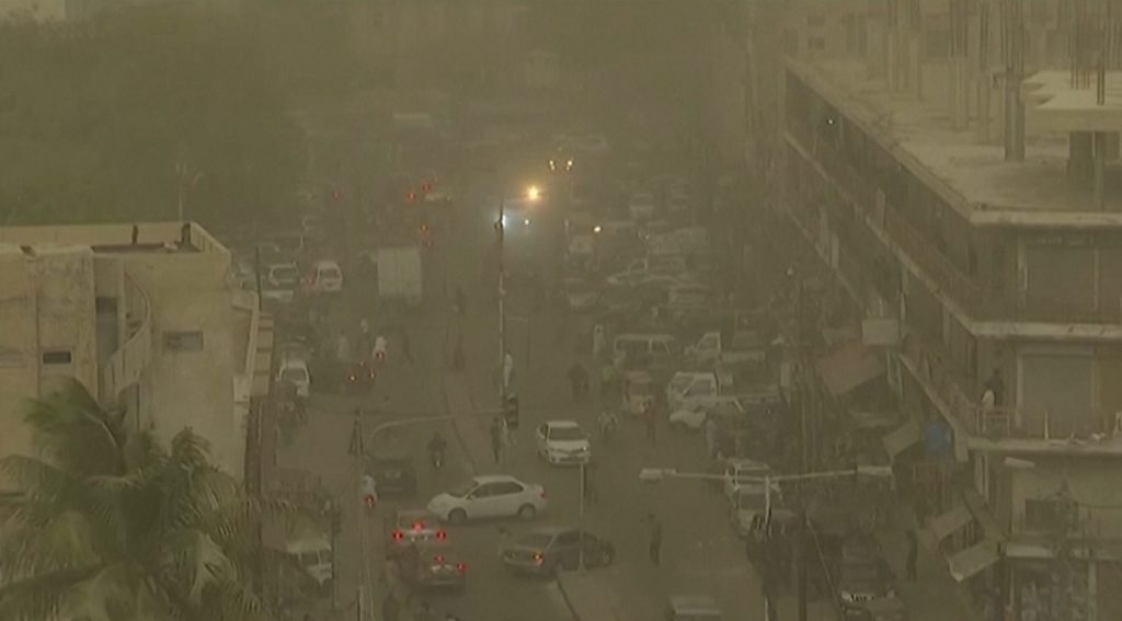কয়েকদিন ধরেই টানা দাবদাহ চলছিলো করাচিতে। সোমবারও তাপমাত্রা ছিলো ৪৪ ডিগ্রি সেলসিয়াস। মঙ্গলবার সাইক্লোন টাউটির প্রভাবে শুরু হয় তীব্র ধূলিঝড়। এ সময় দেয়াল ও ছাদ ধসে মৃত্যু হয় তিনজনের।
