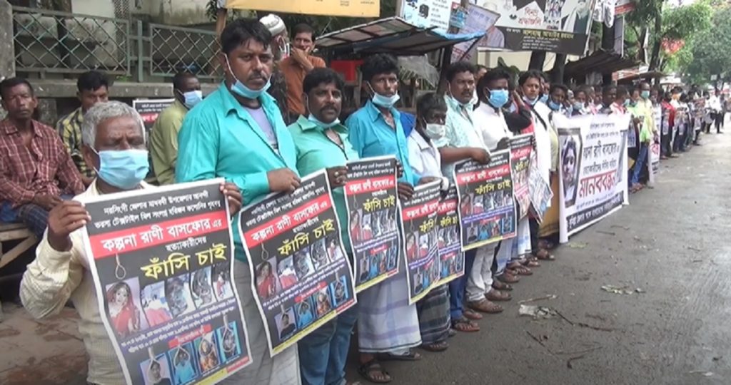 শনিবার (৫ জুন) দুপুরে নরসিংদী সদর উপজেলার প্রেসক্লাবের সামনে এই মানববন্ধন অনুষ্ঠিত হয়। এতে হরিজন সম্প্রদায়ের লোকজন ও নিহত গৃহবধূর স্বজনেরা অংশগ্রহণ করেন। এ সময় তারা কল্পনা রানী হত্যার সুষ্ঠু তদন্ত ও বিচার দাবি করেন।