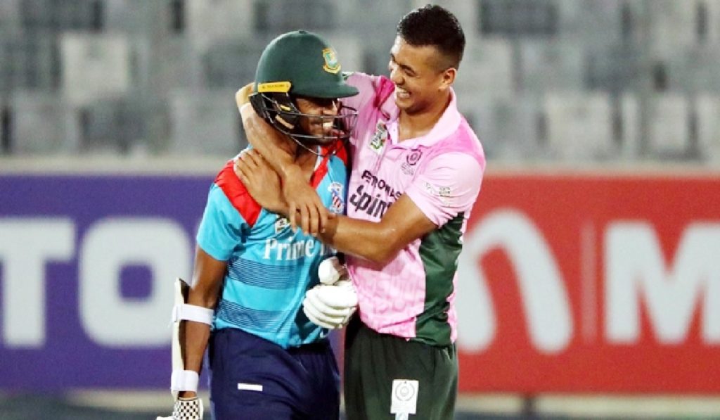 একই ম্যাচে দুই বন্ধু মিলে তুলে নিয়েছেন ৮ উইকেট। সেই দুই বন্ধু মোস্তাফিজ আর তাসকিন। তবে ৫ উইকেট শিকারী মোস্তাফিজ দিনশেষে পরাজিত দলে, ৩ উইকেট শিকারী তাসকিন জয়োৎসব করেছেন। ম্যাচশেষে সামাজিক যোগাযোগ মাধ্যমে দুই বন্ধু মেতেছেন খুনসুটিতেও।