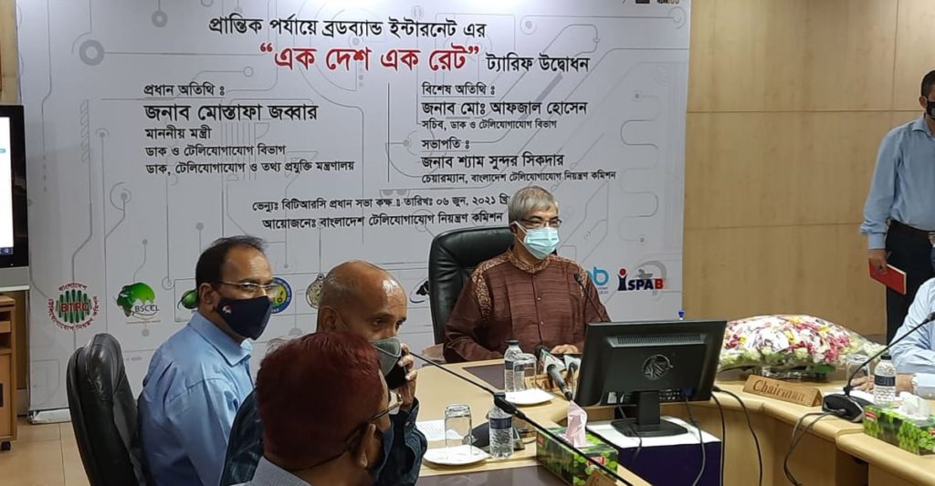 রাজধানীর রমনায় টেলিযোগাযোগ নিয়ন্ত্রণ কমিশনের (বিটিআরসি) কেন্দ্রীয় কনফারেন্স হলে আয়োজিত প্রান্তিক পর্যায়ে ব্রডব্যান্ড ইন্টারনেটের ‘এক দেশ এক রেট’ ট্যারিফের উদ্বোধনী অনুষ্ঠানে সংস্থাটির মহাপরিচালক (সিস্টেম অ্যান্ড সার্ভিস) ব্রিগেডিয়ার জেনারেল মো. নাসিম পারভেজ এসব তথ্য জানান।