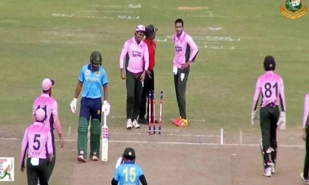কিন্তু এরপর যা হলো তা ক্রিকেটের জন্য সুখকর কিছু নয়। আম্পায়ারের ওই সিদ্ধান্তের প্রতিবাদ জানাতে গিয়ে রীতিমতো যুদ্ধাংদেহী রূপে আর্বিভূত হন মোহামেডানের দলপতি সাকিব আল হাসান। আম্পায়ার মাহফুজুর রহমান লিটুর সামনে থাকা স্ট্যাম্প উপড়ে, মাঠিতে আছড়ে ফেললেন ক্ষুদ্ধ সাকিব। হাততালি দিতে দিতে সতীর্থদের নিয়ে ছেড়ে গেলেন মাঠ।