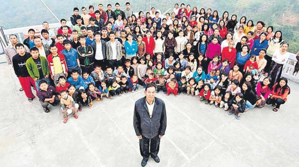 ৩৮ জন স্ত্রী, ৮৯ জন শিশু ও ৩৩ নাতি নাতনি নিয়ে বিশ্বের বৃহত্তম পরিবারের প্রধান হিসাবে বিবেচিত মিজোরামের জিয়ানা চানা রোববার একটি বেসরকারি হাসপাতালে ইন্তেকাল করেছেন। মৃত্যুকালে তার বয়স ছিল ৭৬।