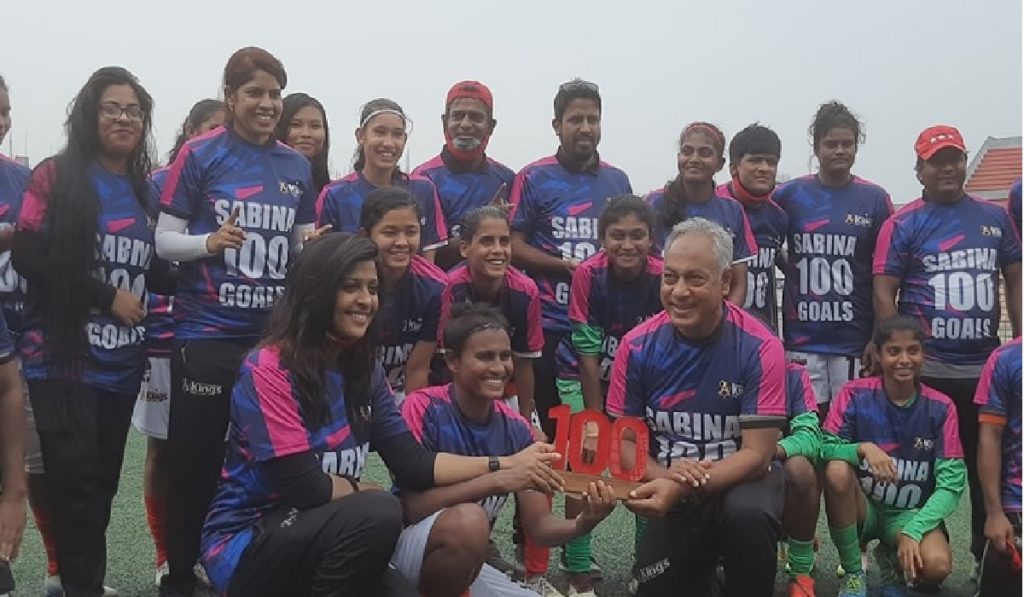বাংলাদেশের প্রথম নারী ফুটবলার হিসেবে ঘরোয়া লিগে ১০০ গোল করেছেন স্ট্রাইকার সাবিনা খাতুন। গোল করেই সাইডলাইনে ছুটে গিয়েছেন কোচ গোলাম রাব্বানী ছোটনের কাছে।