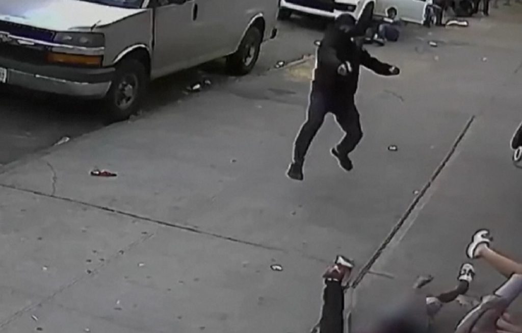 শনিবার ভিডিওটি প্রকাশ করে নিউইয়র্ক পুলিশ। তাতে দেখা যায়, এক ব্যক্তিকে তাড়া করছেন আততায়ী। এ সময় বেপরোয়া ধাক্কায় রাস্তায় পড়ে যায় ফুটপাথে হাটতে থাকা দুটি শিশু। তাদের তোয়াক্কা না করেই গুলি ছুঁড়তে থাকে অস্ত্রধারী। সৌভাগ্যবশত ওই হামলায় কেউ হতাহত হয়নি।