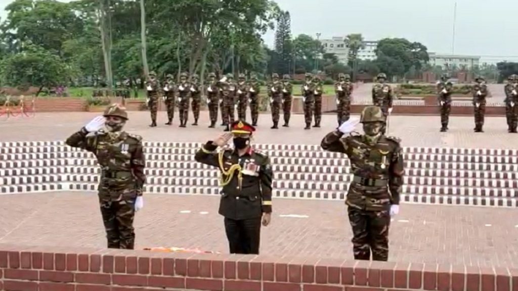 সাভার জাতীয় স্মৃতিসৌধে বীর শহিদদের প্রতি ফুল দিয়ে শ্রদ্ধা নিবেদন করেছেন নবনিযুক্ত সেনাপ্রধান জেনারেল এস এম শফিউদ্দিন আহমেদ, ওএসপি, এনডিইউ, পিএসসি।