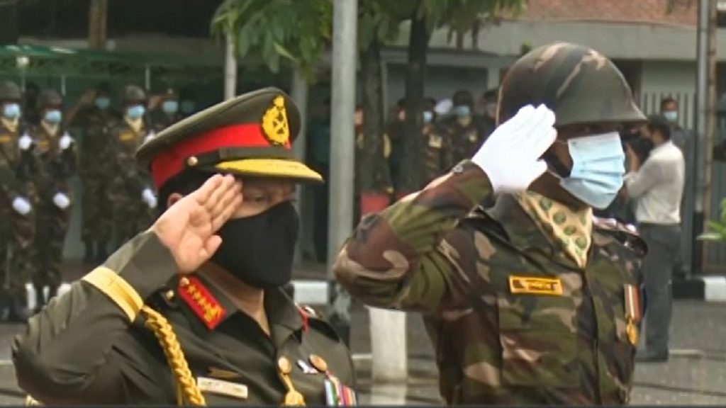 বঙ্গবন্ধুর প্রতিকৃতিতে শ্রদ্ধা নিবেদনের পর সড়ক পথে জাতীয় স্মৃতিসৌধে পৌঁছান নতুন সেনাপ্রধান। সেখানে তাকে বরণ করে নেন ৯ম পদাতিক ডিভিশনের জিওসি মেজর জেনারেল মোহাম্মদ শাহীনুল হক।