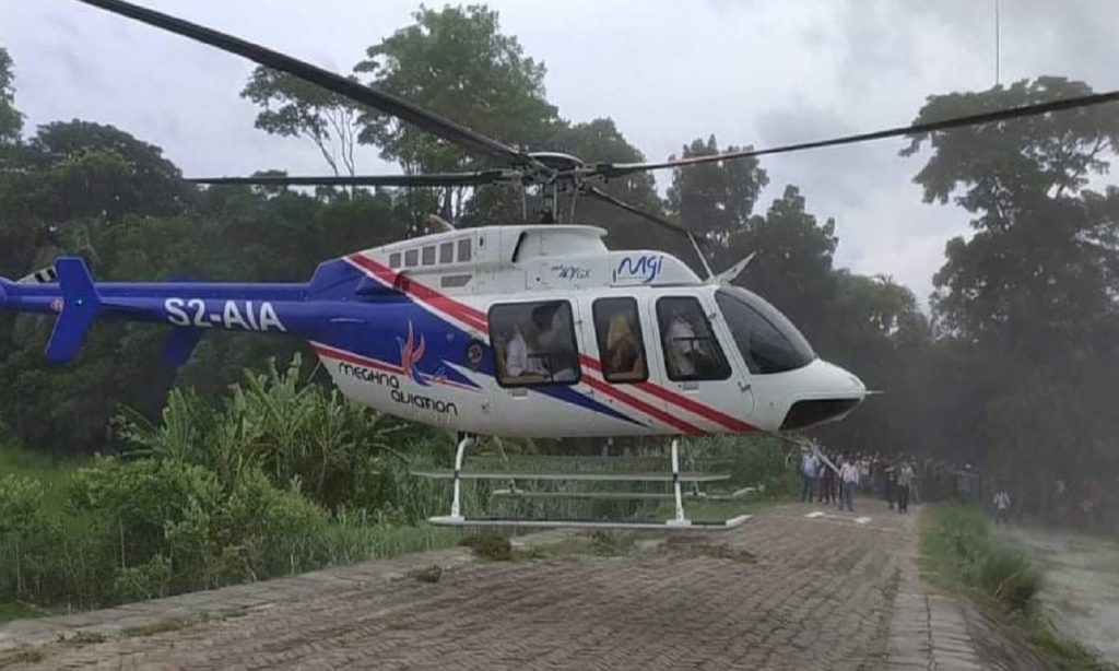 ঘটনাটি সোমবার (২৮ জুন) দুপুরে আংগারিয়া ইউনিয়নের দক্ষিণ ভাষানচর গ্রামে ঘটেছে। ওই গ্রামের জাহাঙ্গীর আলম সরদারের ছেলে সাগর আহম্মেদ মাসুদের নববধূকে ব্রাহ্মণবাড়িয়ার নবীনগর থেকে হেলিকপ্টার যোগে গ্রামে আনা হয়েছে।