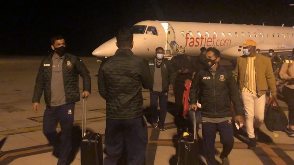 এক টেস্ট আর তিনটি করে ওয়ানডে ও টি-টোয়েন্টি খেলতে ভোর রাতে জিম্বাবুয়ে পৌঁছেছে বাংলাদেশ দল। প্রথম করোনা টেস্ট রিপোর্টে দলের সবাই নেগেটিভ সনদ পেলে ১ জুলাই থেকে অনুশীলন শুরু করবে মুমিনুল হকের দল।