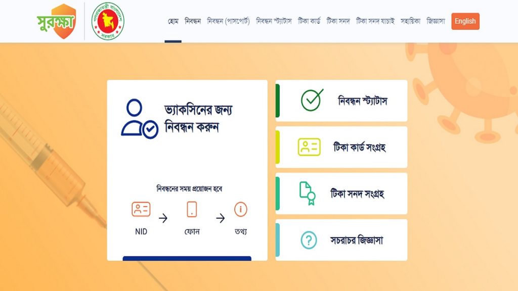 টিকার নিবন্ধন করতে হলে স্মার্ট ফোনে ইন্টারনেট সংযুক্ত করে ‘সুরক্ষা’ অ্যাপটি ডাউনলোড করতে হবে। পাশাপাশি https://surokkha.gov.bd/ এই ওয়েবসাইটেও নিবন্ধন করা যাবে। নিবন্ধনের সময় ফোন ও জাতীয় পরিচয়পত্রের নম্বর, নাম, জন্মতারিখের পাশাপাশি কোনো শারীরিক জটিলতা আছে কি না, পেশা এসব তথ্য প্রদান করতে হবে।
