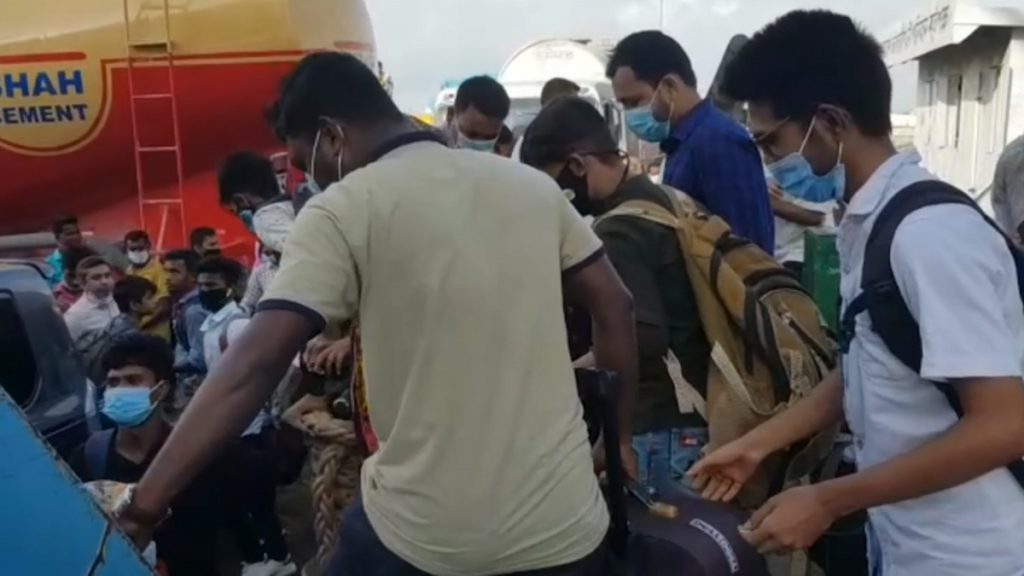 কঠোর বিধিনিষেধ উপেক্ষা করে ফেরিঘাটে হঠাৎই বেড়েছে মানুষের ভিড়। শুক্রবার সকাল থেকে মুন্সিগঞ্জের শিমুলিয়া ঘাটে নদী পার হতে দেখা যায় ঘরমুখো মানুষকে। ঢাকাসহ বিভিন্ন স্থান থেকে তারা ভেঙে ভেঙে ঘাটে পৌঁছায়।