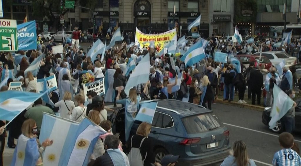 সরকার বিরোধী আন্দোলনে উত্তাল আর্জেন্টিনা। করোনা মহামারির মাঝেই রাজপথে নেমেছে হাজারো মানুষ। শুক্রবার দেশটির স্বাধীনতা দিবস উপলক্ষে রাজধানী বুয়েনস আয়ার্সে সকাল থেকেই জড়ো হয় বহু মানুষ।
