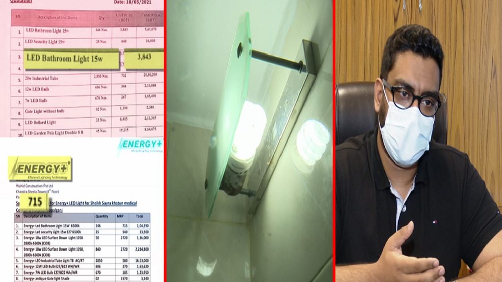নির্মাণাধীন সরকারি হাসপাতালে এমন দরে বৈদ্যুতিক সরঞ্জাম সরবরাহ করছে স্বাস্থ্যমন্ত্রীর ভাগ্নের প্রতিষ্ঠান, ‘কসমো লাইটিং’।