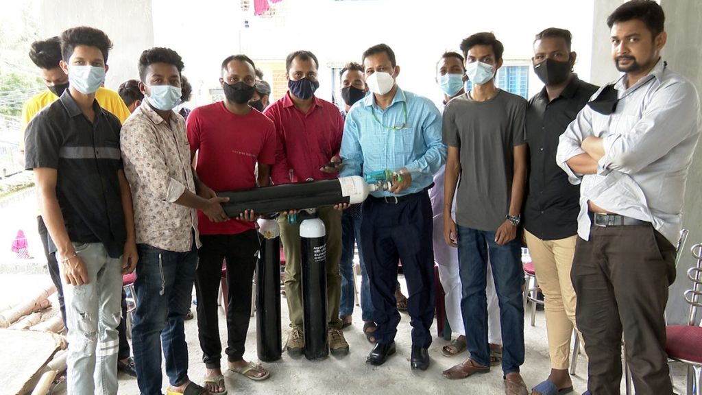 জরুরি অক্সিজেন সেবা নিয়ে করোনা রোগীদের পাশে দাঁড়িয়েছেন ‘লায়ন্স ক্লাব অব এলিগেন্ট গ্রিন সিটি’ ও ‘লিও ক্লাব অব এলিগেন্ট গ্রিন সিটি’। মঙ্গলবার (১৩ জুলাই) বিকেলে রাজধানীর মিরপুরে তিনটি অক্সিজেন সিলিন্ডার ‘লায়ন্স ক্লাব অব এলিগেন্ট গ্রিন সিটি’ ও ‘লিও ক্লাব অব এলিগেন্ট গ্রিন সিটি’-র সদস্যদের মাঝে হস্তান্তর করা হয়। সিলিন্ডারগুলো হস্তান্তর করেন সিনিয়র লায়ন ও সদ্য সাবেক লিও ক্লাব চেয়ারম্যান এবং খুলনা কৃষি বিশ্ববিদ্যালয়ের রেজিস্ট্রার (ভারপ্রাপ্ত) ড. খন্দকার মাজহারুল আনোয়ার-এমজেএফ।