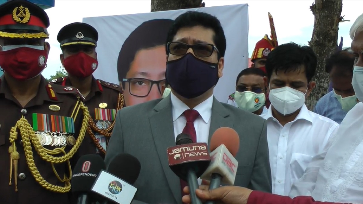 সাংবাদিকদের সাথে কথা বলছেন জনপ্রশাসন প্রতিমন্ত্রী ফরহাদ হোসেন।