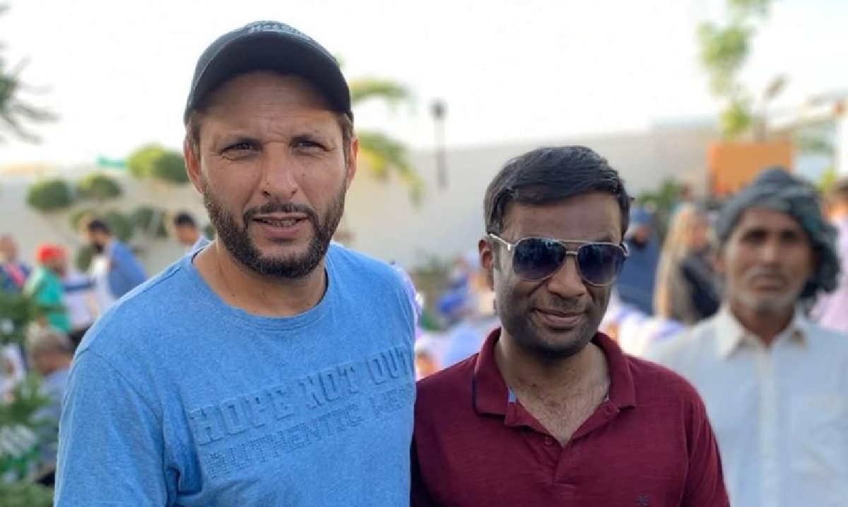 শহীদ আফ্রিদির সাথে ক্রিকেট পরিসংখ্যানবিদ সোহাইল খান। ছবি: সংগৃহীত