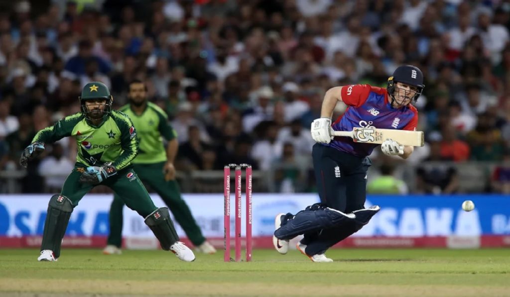 ব্যাট করতে নেমে শুরুটা ভালো হলেও আদিল রশিদের নিয়ন্ত্রিত বোলিংয়ে বড় স্কোর করতে পারেনি পাকিস্তান। মোহাম্মদ রিজওয়ানের অপরাজিত ৭৬ আর ফখর জামানের ২৪ রান ছাড়া বড় স্কোর পাননি কেউই। ওপেন করতে নেমে রিজওয়ান ইনিংসের শেষ পর্যন্ত অপরাজিত থেকে দলীয় সংগ্রহকে একটা ভদ্রস্থ চেহারা দেন। আদিল রশিদ নিয়েছেন ৪ উইকেট।
