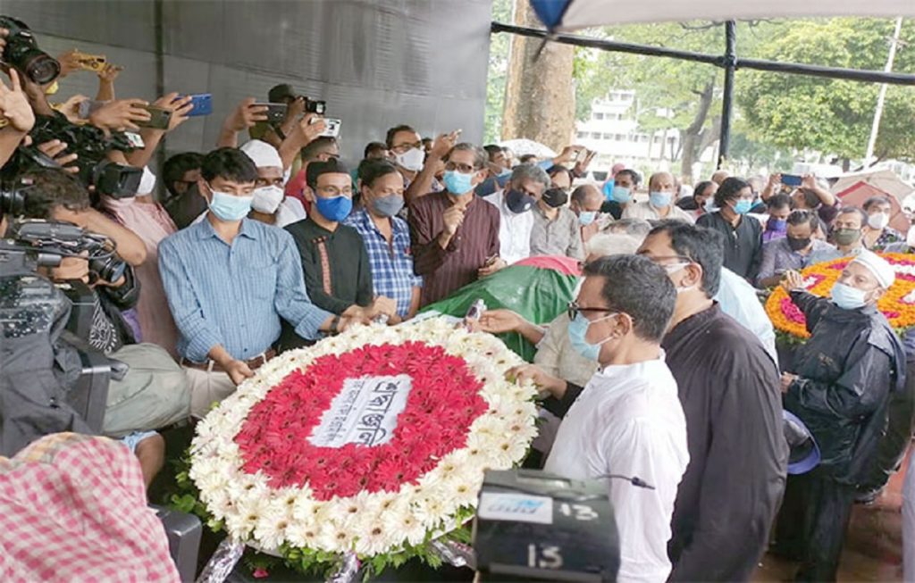 শনিবার দুপুর পৌনে ১২টায় তার মরদেহ শহিদ মিনারে নেয়া হয়। সেখানে দুপুর পৌনে ২টা পর্যন্ত মরদেহে ফুল দিয়ে শ্রদ্ধা জানানো হয়।