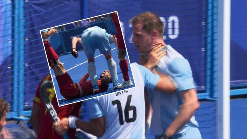 টোকিও অলিম্পিকে স্পেন বনাম আর্জেন্টিনার হকি ম্যাচে স্পেনের এক খেলোয়াড়ের মাথায় হকিস্টিক দিয়ে আঘাত করেন আর্জেন্টিনার এক খেলোয়াড়। খবর ইউরো স্পোর্টসের।