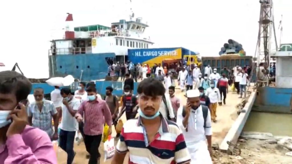 আজ মঙ্গলবার (২৭ জুলাই) চলমান বিধিনিষেধের পঞ্চমদিনেও এই নৌরুটের বাংলাবাজার ঘাট থেকে শতশত ঢাকামুখী যাত্রী আসছে শিমুলিয়াঘাটে, আবার শিমুলিয়া হয়ে বাংলাবাজার যাচ্ছে দক্ষিণ-পশ্চিমাঞ্চলগামী যাত্রীরা। তবে ফেরিতে দক্ষিণবঙ্গগামী যাত্রীদের চাইতে ঢাকামুখী যাত্রীদের উপস্থিতি বেশি। আর বিপুল যাত্রীসমাগমে ফেরিতে উপেক্ষিত হচ্ছে স্বাস্থ্যবিধি এবং সামাজিক দুরত্ব।