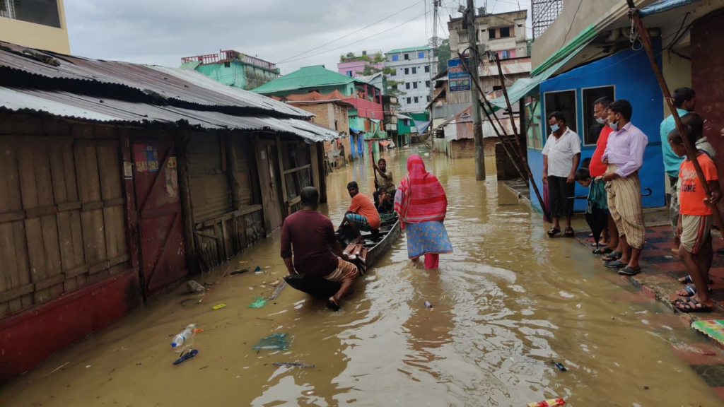 এছাড়াও কক্সবাজারের নিম্নাঞ্চলও ডুবে আছে। চকরিয়া, রামু, সদর, উখিয়া, পেকুয়াসহ ৯ উপজেলায় ৪২৫টি গ্রাম প্লাবিত হয়ে আছে। পানিবন্দি তিন লক্ষাধিক পরিবার। মাতামুহুরি-বাকখালি নদীর পানি বইছে বিপদসীমার ওপরে। স্থানীয় প্রশাসন জানিয়েছে, দুর্গতদের জন্য ১৩৫ টন চাল ও ৫ লাখ টাকা বরাদ্দ দেয়া হয়েছে। কক্সবাজারে ভারি বর্ষণে মঙ্গল ও বুধবার পাহাড়ধসে ২০ জনের মৃত্যু হয়েছে।