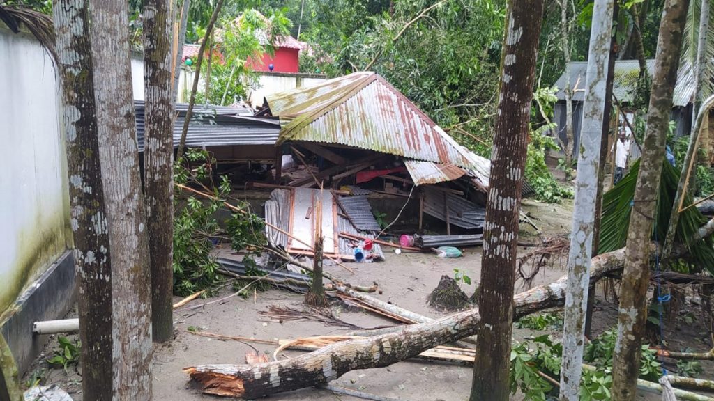 ঝড়ের তাণ্ডবের পর ফায়ার সার্ভিস ও স্থানীয় জনতা গাছ সরিয়ে উদ্ধার অভিযান পরিচালনা করে।
