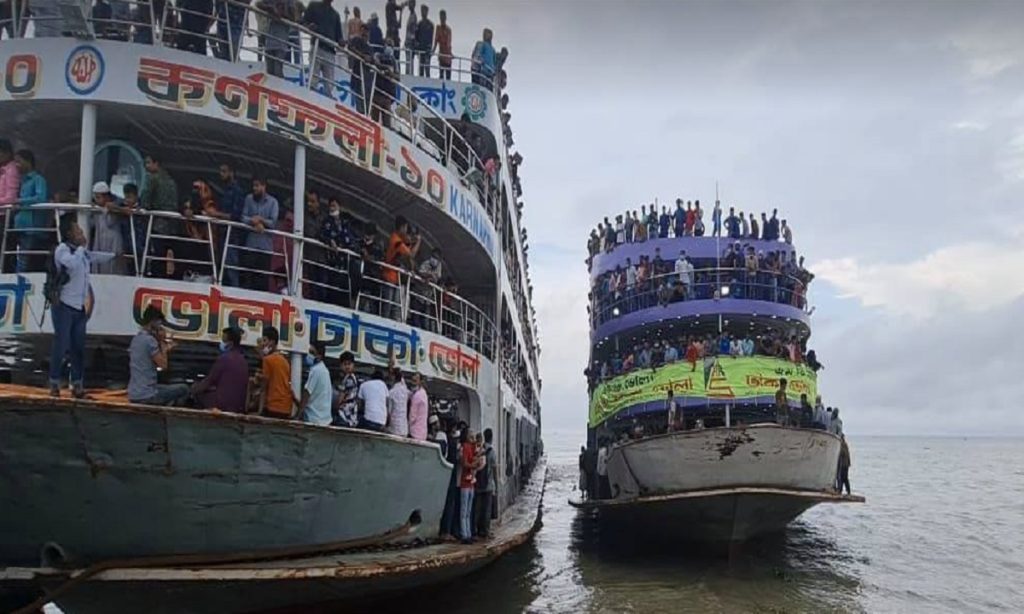 ভোলার ইলিশাঘাট থেকে ঢাকার উদ্দেশ্যে ছেড়ে আসা প্রতিটি লঞ্চেই যাত্রী ছিলো ধারণ ক্ষমতার অতিরিক্ত। বেশির ভাগ যাত্রীর মুখেই ছিলো না মাস্ক অন্যদিকে গাদাগাদি করেই যাত্রী নিয়ে ছেড়ে এসেছে লঞ্চগুলো।
