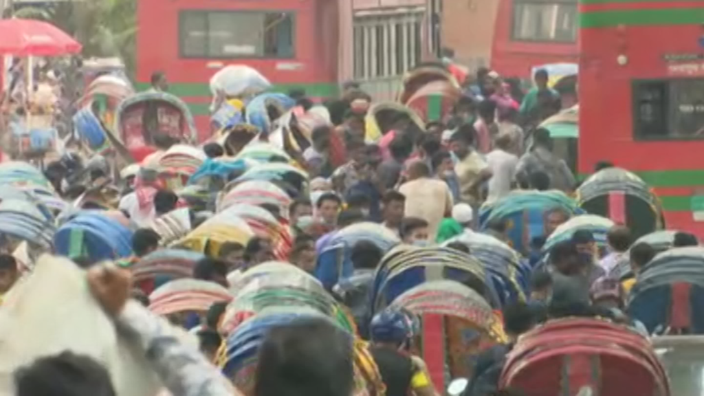 ঢাকার প্রবেশমুখগুলোতে দিয়ে বিপুলসংখ্যক মানুষ রাজধানীতে প্রবেশ করছেন। সারাদেশ থেকে ভেঙে ভেঙে বিভিন্ন যানবাহনে ঢাকায় আসছেন মানুষ।