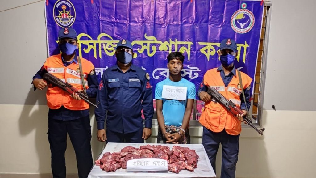 খুলনার কয়রায় অভিযান চালিয়ে ৯ কেজি ৯০০ গ্রাম কেজি হরিণের মাংসসহ এক চোরাশিকারিকে আটক করেছে কোস্টাগার্ড পশ্চিম জোনের সদস্যরা। আটককৃত ব্যক্তির নাম মো. আল-আমিন হোসেন (২১)। সে সাতক্ষীরার শ্যামনগর উপজেলার লক্ষীখোলা গ্রামের মুসা ঢালীর ছেলে।