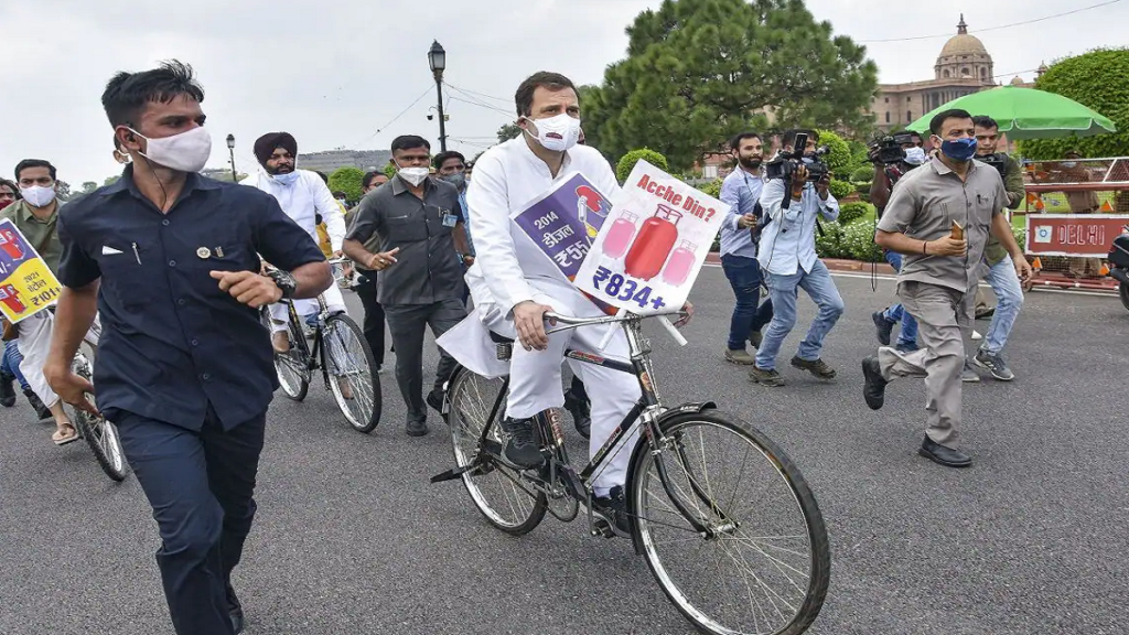 মঙ্গলবার (৩ আগস্ট) জ্বালানি তেলের মূল্যবৃদ্ধির প্রতিবাদে সাইকেল চালিয়ে পার্লামেন্টে গিয়েছেন তিনি। গত সপ্তাহে কৃষি আইনের প্রতিবাদে ট্রাক্টর চালিয়ে পার্লামেন্টে গিয়ে আলোচনার জন্ম দেন রাহুল।