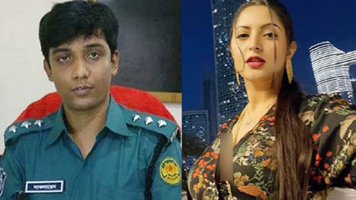 পুলিশ কর্মকর্তা সাকলায়েন ও নায়িকা পরীমণি।