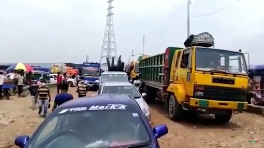 ফেরি স্বল্পতার কারণে যানবাহনের জট লেগেছে শিমুলিয়া-বাংলাবাজার ঘাটে। মূলত তীব্র স্রোতের কারণে ফেরি চলাচল সীমিত। ৫-৬ দিন ধরে অপেক্ষা করছে অনেক পণ্যবাহী যানবাহন।