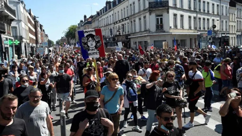 করোনা সংক্রান্ত বিশেষ পাস বন্ধের দাবিতে আবারও বিক্ষোভে উত্তাল ফ্রান্স। গতকাল শনিবার (১৪ আগস্ট) পঞ্চম দফায় রাজধানী প্যারিসের রাস্তায় জমায়েত হন হাজার হাজার বিক্ষোভকারী।