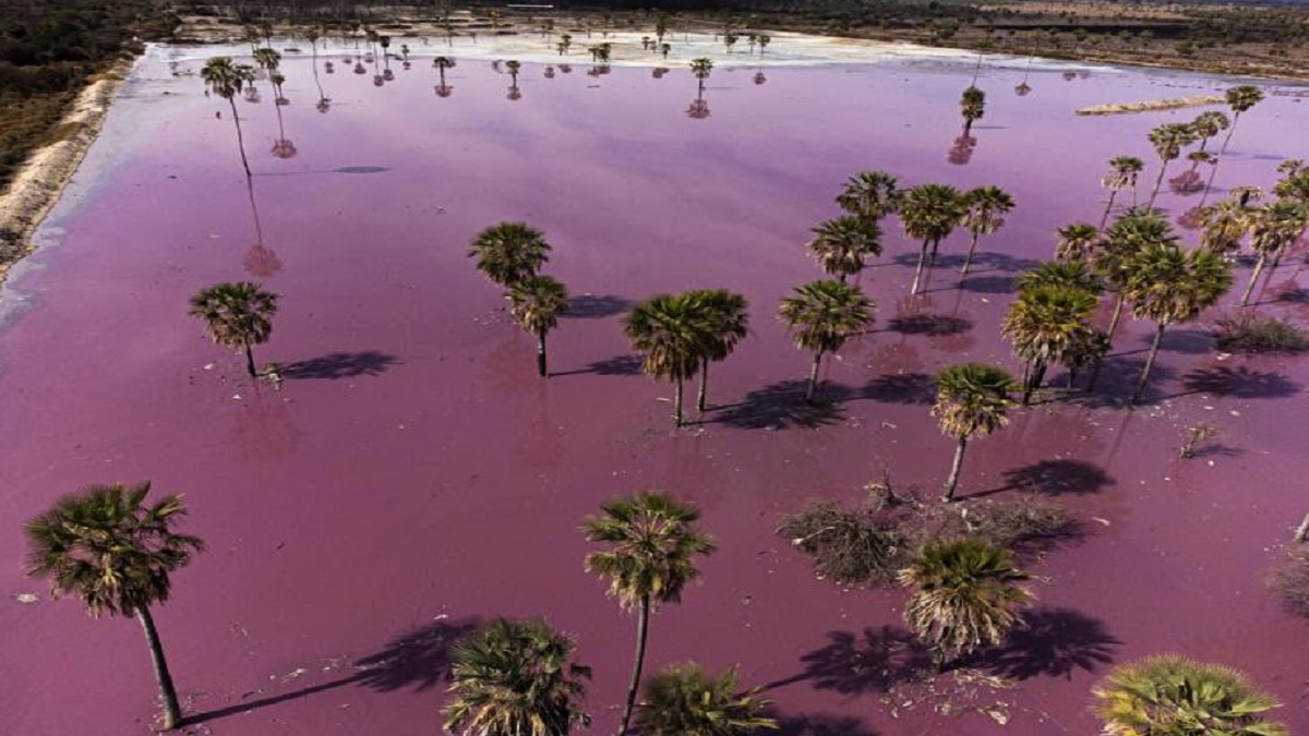 দূষণের কারণে গোলাপি রঙ ধারণ করেছে প্যারাগুয়ের ওয়াইপোয়া হ্রদের পানি। ছবি: সংগৃহীত