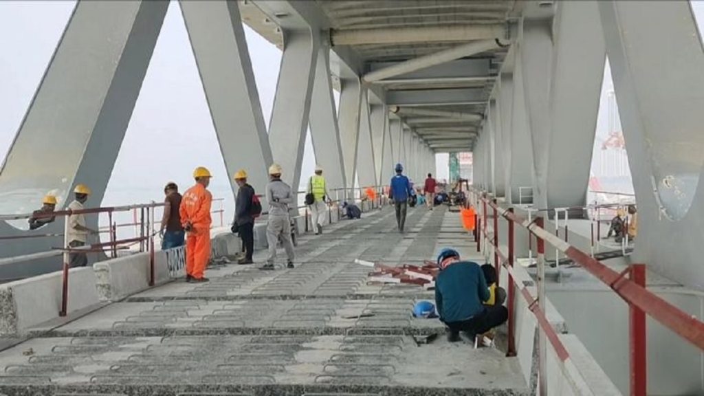 সোমবার (২৩ আগস্ট) সকালে সেতুর ১২ ও ১৩ নম্বর পিলারে সর্বশেষ রোডওয়ে স্ল্যাব বসানোর কাজ শেষ হয়েছে। এর মধ্য দিয়ে সেতুর ২ হাজার ৯১৭টি রোডওয়ে স্ল্যাব বসানো হয়েছে বলে জানিয়েছেন সেতু প্রকল্পের প্রকৌশলীরা।