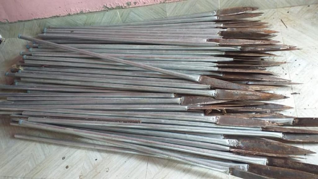 পাবনার ফরিদপুর উপজেলার পুঙ্গুলী ইউনিয়নের রতনপুর গ্রামের একটি বাড়ি থেকে ৯৫ টি ষ্টিলের বর্ষাজাতীয় দেশীয় অস্ত্র উদ্ধার করেছে পুলিশ। জানা গেছে, অস্ত্রগুলো লোহা দিয়ে বানানো এবং প্রতিটিই লম্বায় ৫ ফুট ও ফলার দুই পাশে বিশেষ কলার লাগানো রয়েছে।
