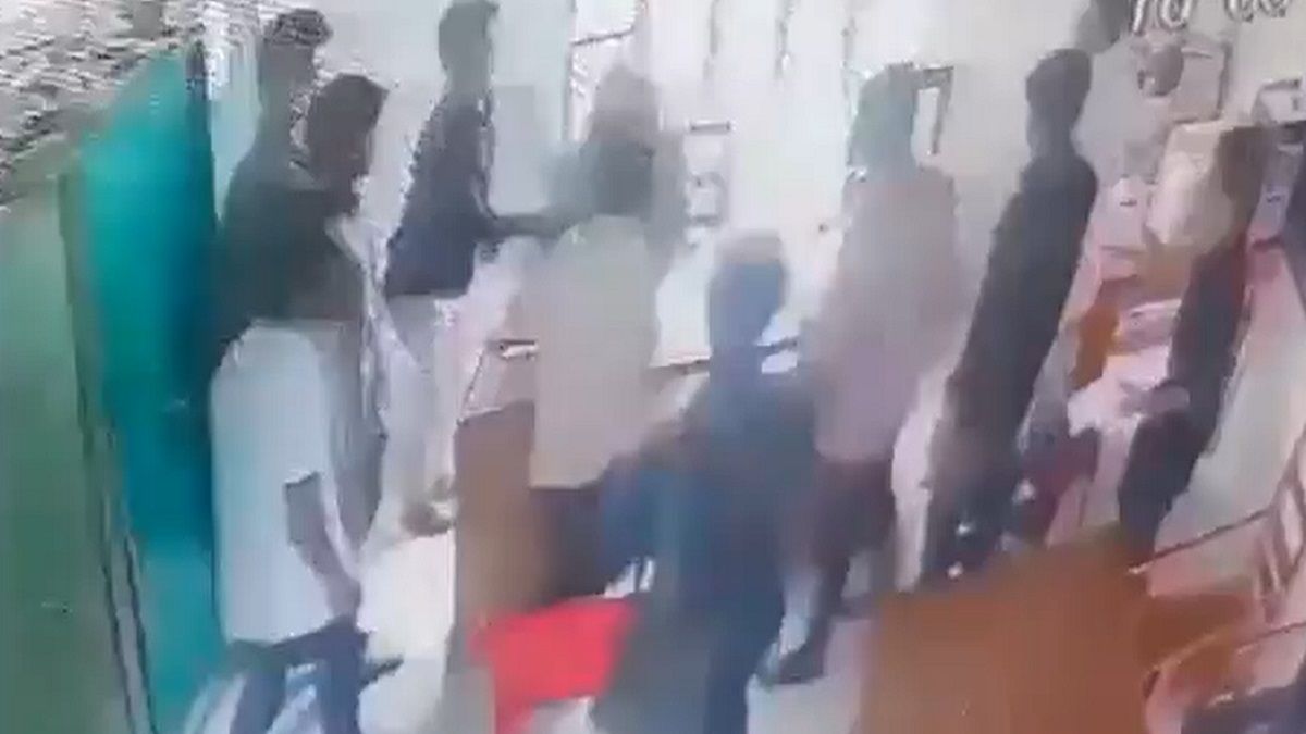 জুতাপেটা করার সময়ের সিসিটিভি দৃশ্য।
