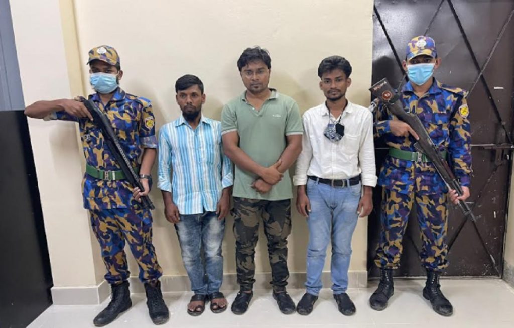 বৃহস্পতিবার বিকাল সোয়া ৫টার দিকে বালুখালী পানবাজার ক্যাম্পের এপিবিএন সদস্যরা ক্যাম্প-৮ ইস্টরে সিআইসি অফিসের সামনে পাকা রাস্তার ওপর থেকে তাদেরকে আটক করেন।