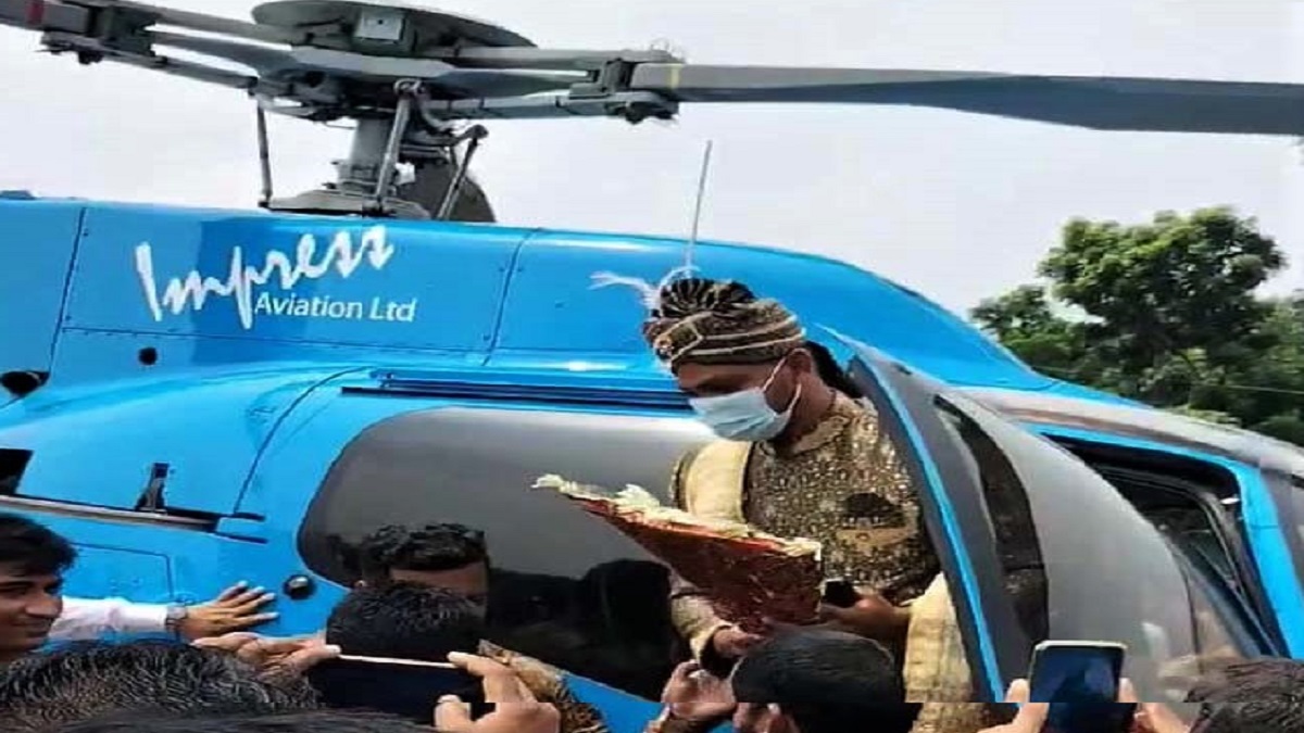 হেলিকপ্টারে চড়ে কনের বাড়ি আসেন বর।