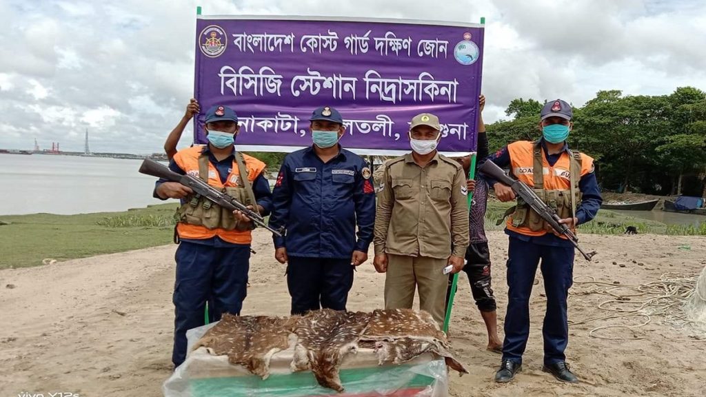 বরগুনার তালতলীতে অবৈধভাবে শিকার করা তিনটি হরিণের চামড়া উদ্ধার করেছে কোস্টগার্ডের সদস্যরা।