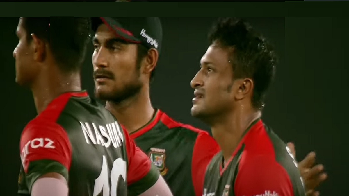 কিউইদের তৃতীয় উইকেটের পতনের পর সাকিবকে ঘিরে টাইগারদের উদযাপন।