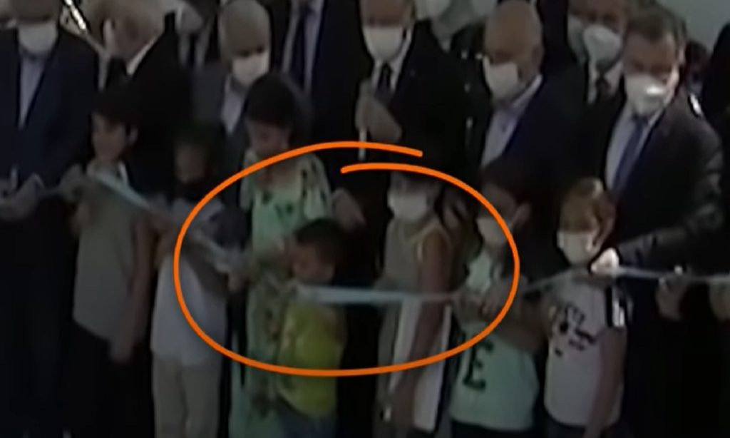 ভিডিওতে দেখা যায়, মটর টানেল উদ্বোধনের জন্য প্রেসিডেন্ট এরদোগান একটি মঞ্চে দাঁড়িয়েছেন। পাশেই ফিতা নিয়ে দাঁড়িয়েছেন সরকারি কর্মকর্তাসহ ৬-৭ জন শিশু।