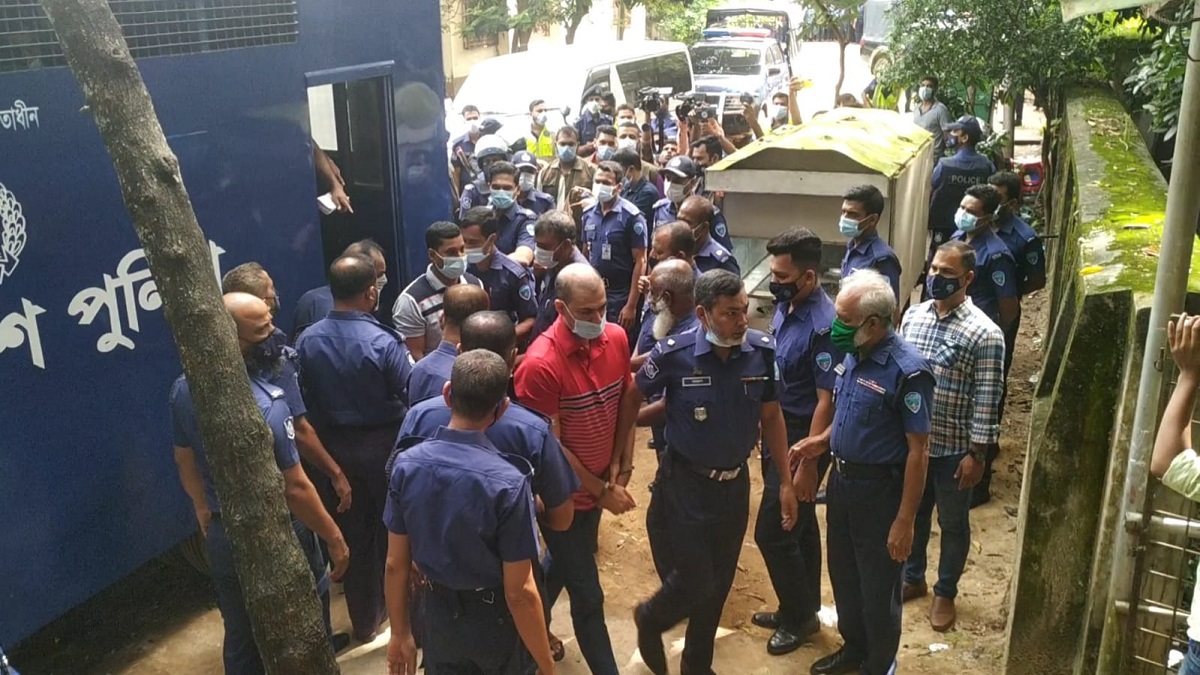 প্রিজন ভ্যান থেকে সিনহা হত্যা মামলার আসামিদের এজলাসে নেয়া হচ্ছে।