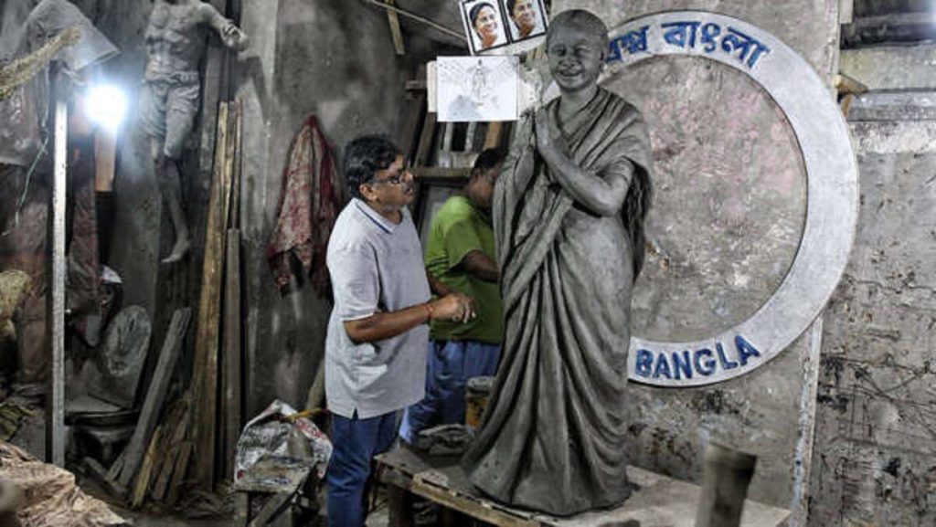 মমতার আদলে দুর্গা প্রতিমা বানিয়ে তুমুল আলোচনার জন্ম দিয়েছেন কলকাতার এক প্রতিমা শিল্পী। মুখ্যমন্ত্রীর চেহারার আদলে দুর্গা প্রতিমা তৈরি নিয়ে মুখোমুখি অবস্থানে বিজেপি-তৃণমূল কংগ্রেস।